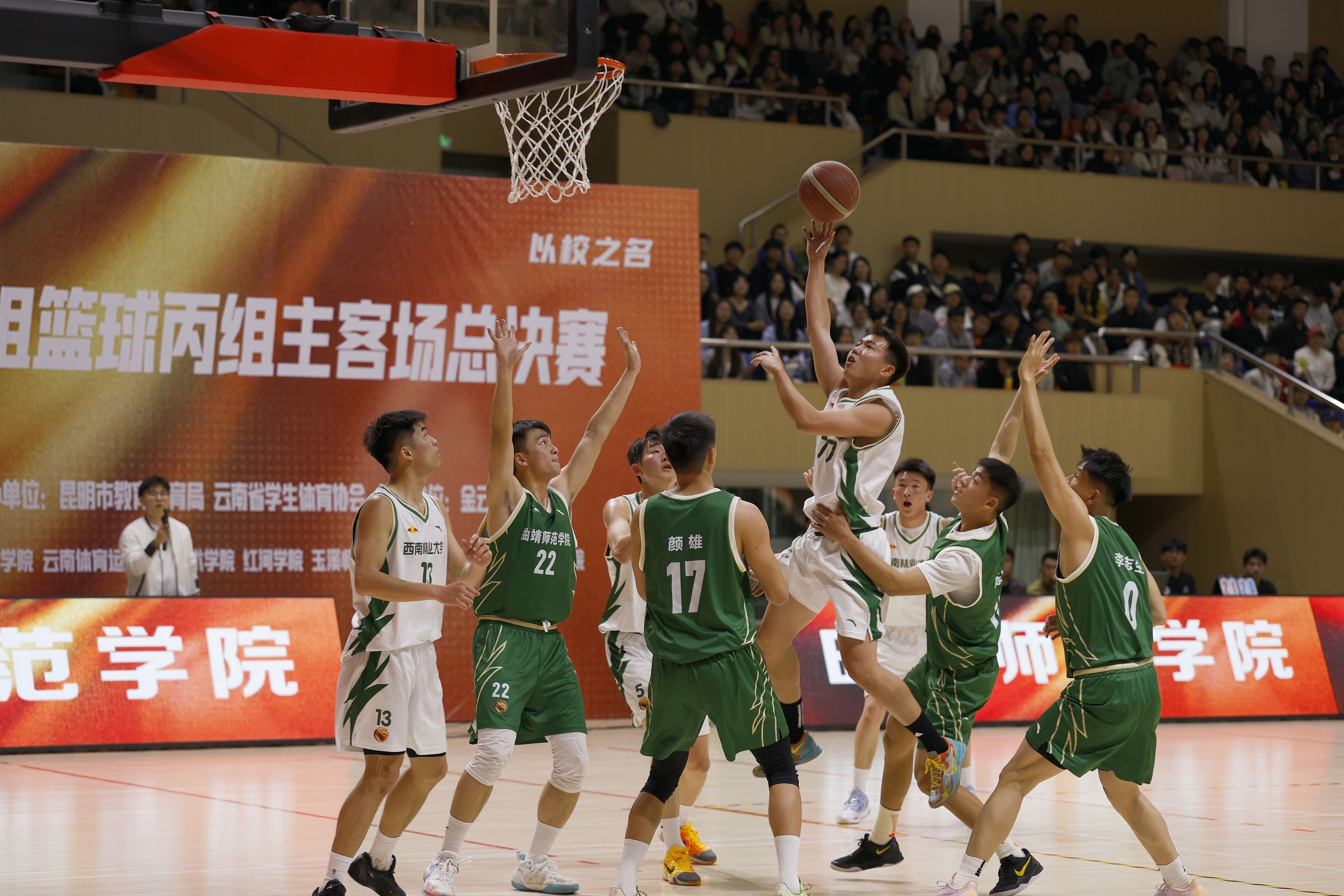 3月20日晚,第十七届云南省运动会大学生男子篮球(丙组)总决赛在西南林业大学开赛,西南林业大学男篮坐镇主场,迎战曲靖师范学院男篮。本次赛事由云南省体育局、云南省教育厅、云南省总工会主办,昆明市人民政府承办。采用主客场制,是省运会大学生篮球的关键赛事,也是全省高校篮球运动水平的一次集中展示。