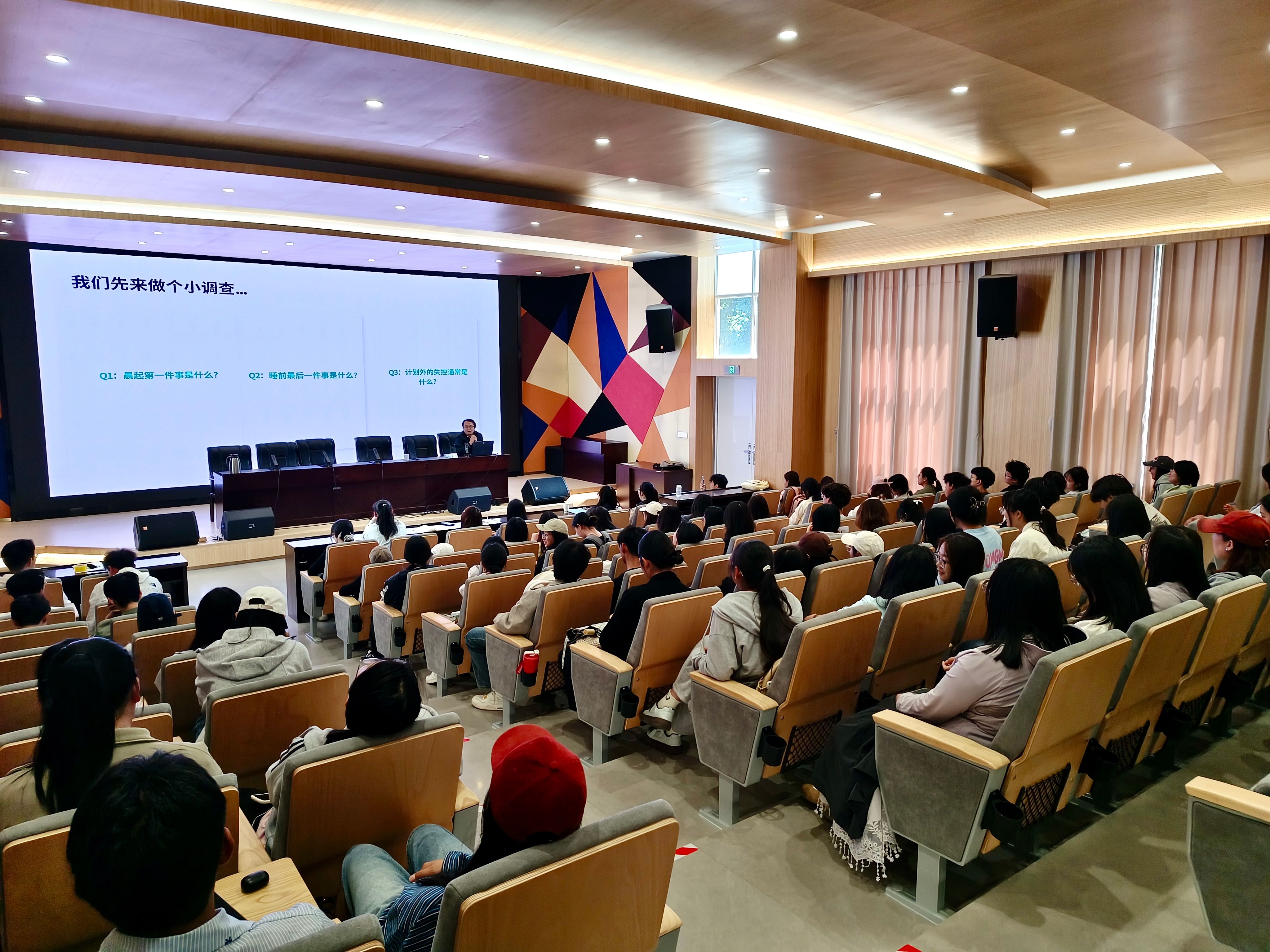 讲座最后,汪飞寄语在场同学,大学是塑造思维与行为模式的黄金期,切勿让宝贵的时间与注意力被无形的算法吞噬。这场讲座让同学们受益匪浅,既对手机依赖的机制有了更清晰的认识,又掌握了可操作的自控方法。